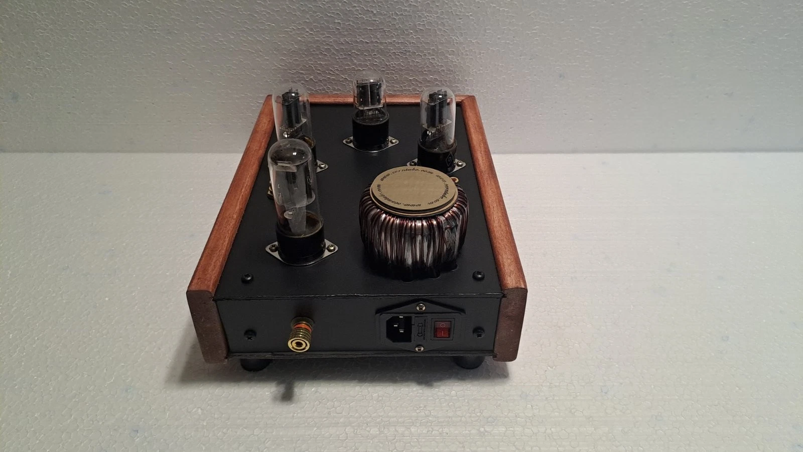 For sale handcrafted tube buffer. The case is made of yellow pine. It uses a full-wave vacuum rectifier. Split-correct and powerful output are based on a 5C4S reflector tube.